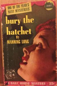 Manning Long– Tremendously under appreciated and underexposed now, through the decade of the 1940s Manning Long created gritty mysteries with tangy of humor. Her novels are hard to find, no longer in print (though quite popular when they came out), but once you snag your first one, you won’t be able to quit. The protagonist of the series is Liz (Louise) Parrott, a savvy, smart-talking red head in the mode of Anne Sheridan or Lucille Ball. With titles like Here’s Blood in Your Eye, Bury the Hatchet, and Dull Thud, Long’s novels leave not doubt that you and Liz are in for some gritty and bitingly ironic adventures. Yet beneath the cynicism that Liz projects to others (and tries to convince herself is her true, experience-hardened self) is a decent human being. We see this in the mutual affection and sarcasm she shares with her Siamese rescue cat I-Am and her insight into the characters she intermingles with en route to disentangling herself from murders threaded through a series of seven books ranging from 1941-48. Her skeptical banter with the DA investigator in the first book (Blood in Your Eye) may be sharp as a razor – and just as effective a defense- but his decency and the warmth lurking in her heart lead them into becoming a passionately bonded investigating duo. It’s a duo based on independence and mutual respect, with plenty of smart talk spicing the romance.
