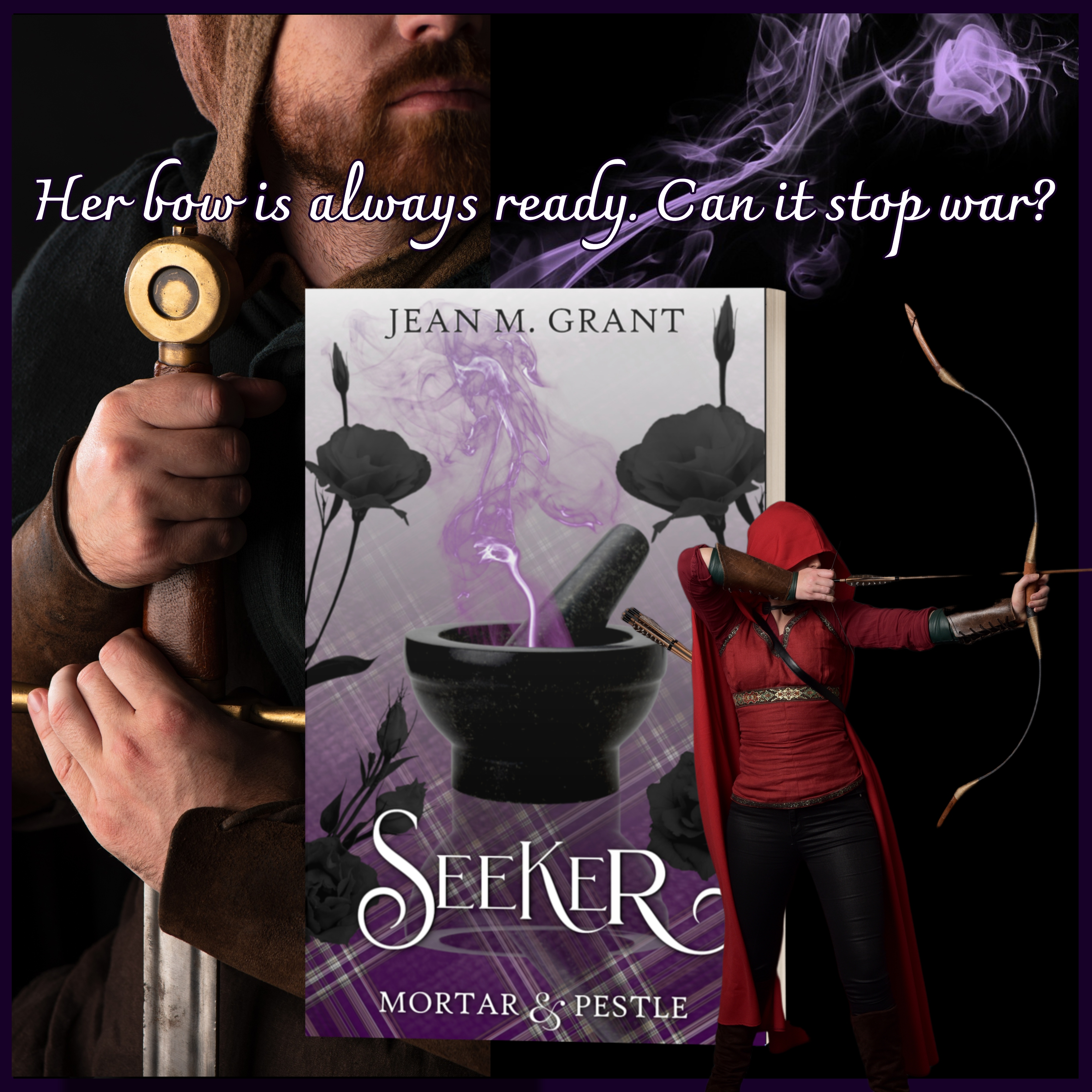 “Seeking the Source of Seeker in the Mortar & Pestle Series”by Jean M. GrantHow my latest book came about… In early 2022, a group of seven authors got together through Zoom to talk shop, one thing led to I already had a series (The Hundred Trilogy) set in medieval Scotland, so I dipped into that world and came up with an adventure that revolves around a yearly clan tournament. I chose two secondary characters (one being the sister of the protagonist-hero) from my third book in that collection. I wondered: “Wouldn’t Aileana and Brodie’s story be fun to write?” The back cover blurb . . . Nock, draw, release. Her bow is always ready, and if her arrow hits its mark, she will secure her destined soulmate.