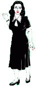In Dead Man, Jessica’s fitted black linen dress with the white linen collar is inspired by this outfit from She Knew All the Answers.  As you can see from the picture, I didn’t have to use much imagination to come up with black and white for this one.  The colors do play an important role in the narrative, though.  For when Jessica tries to hide behind the refuge of one of the NYPL lions, she lives in terror that a flash of white from her collar will give her away to her deadly pursuers.