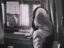 Anita, the smart young woman whose wit and warmth had led Sam to see her as a beacon of hope for belonging, betrays his trust in order to protect her father. In fact, the reflection of her in a mirror as she hides from Sam after obstructing justice to protect her father reverses the earlier image of her as the beacon guiding him to human relations.  Here, rather than being before him, she lurks behind him as he stands uneasily sensing something is wrong, threatening.  Though both images were linked to glass, where previously the clear panes revealed her as at peace and content, now she is both more distant, existing as only a reflection, and one step removed, hidden from him, the heavy door and the lines of the mise en scène reinforcing their isolation.