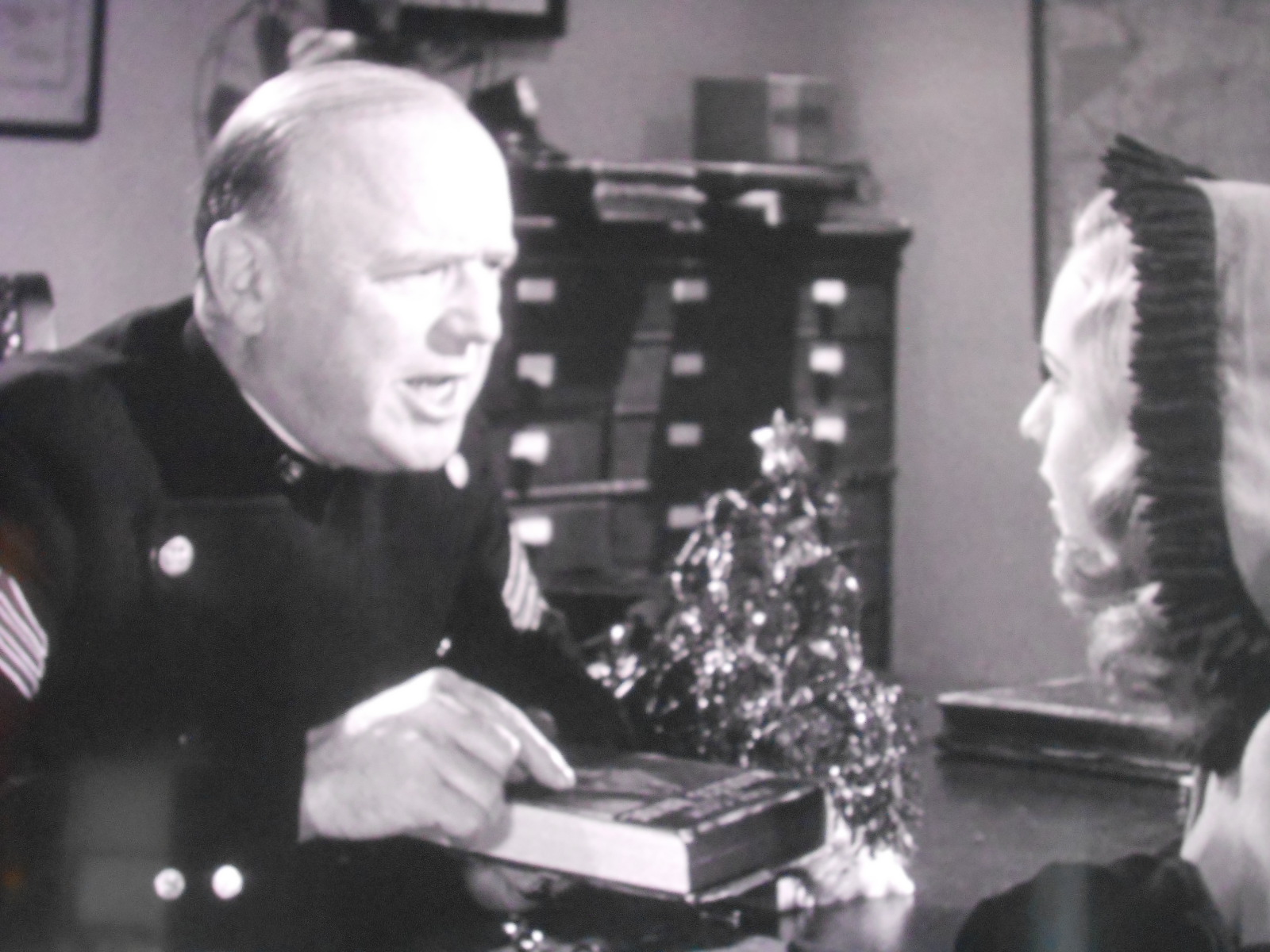 Of course, no one really believes Nicki when she tries to sound the alarm, not fussy factotum Edward Everett Horton sent to meet her at the station and definitely not the  crusty desk sergeant (William Frawley at his crustiest best) – especially when the latter sees that Nicki is holding a sensational novel by her favorite mystery writer.