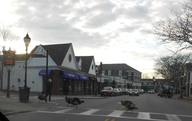 But here’s where things get really weird.  Driving through the town of Falmouth, we had to stop for some feathered pedestrians.