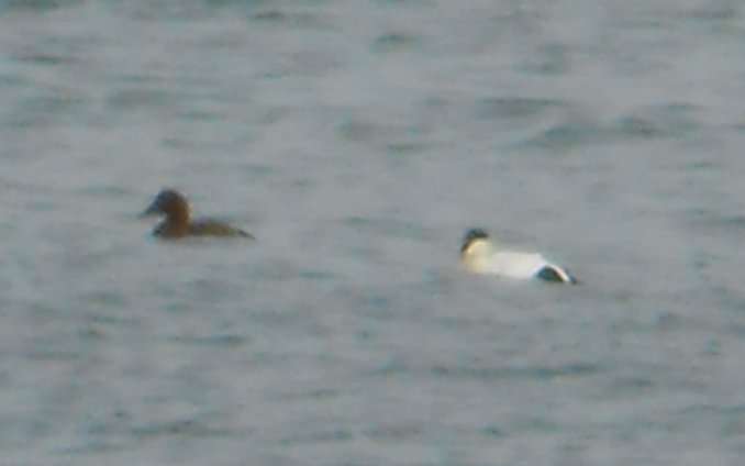 We also saw a pair of Eider ducks.  I know they are a little blurry, but, again, there’s that pesky ocean in the way.  Do you think the Eiders are funky enough to want to get down?  Sorry, I couldn’t resist.