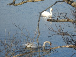 The weekend after my birthday, there was a slight warming spell, so Yang and I made an expedition to Falmouth. After a hearty tea luncheon at the Dunbar Tea House – love that Ice Wine Tea! – we did some bird watching on the nearby rail trail.  In one of the ponds, we saw the beautiful swans above.
