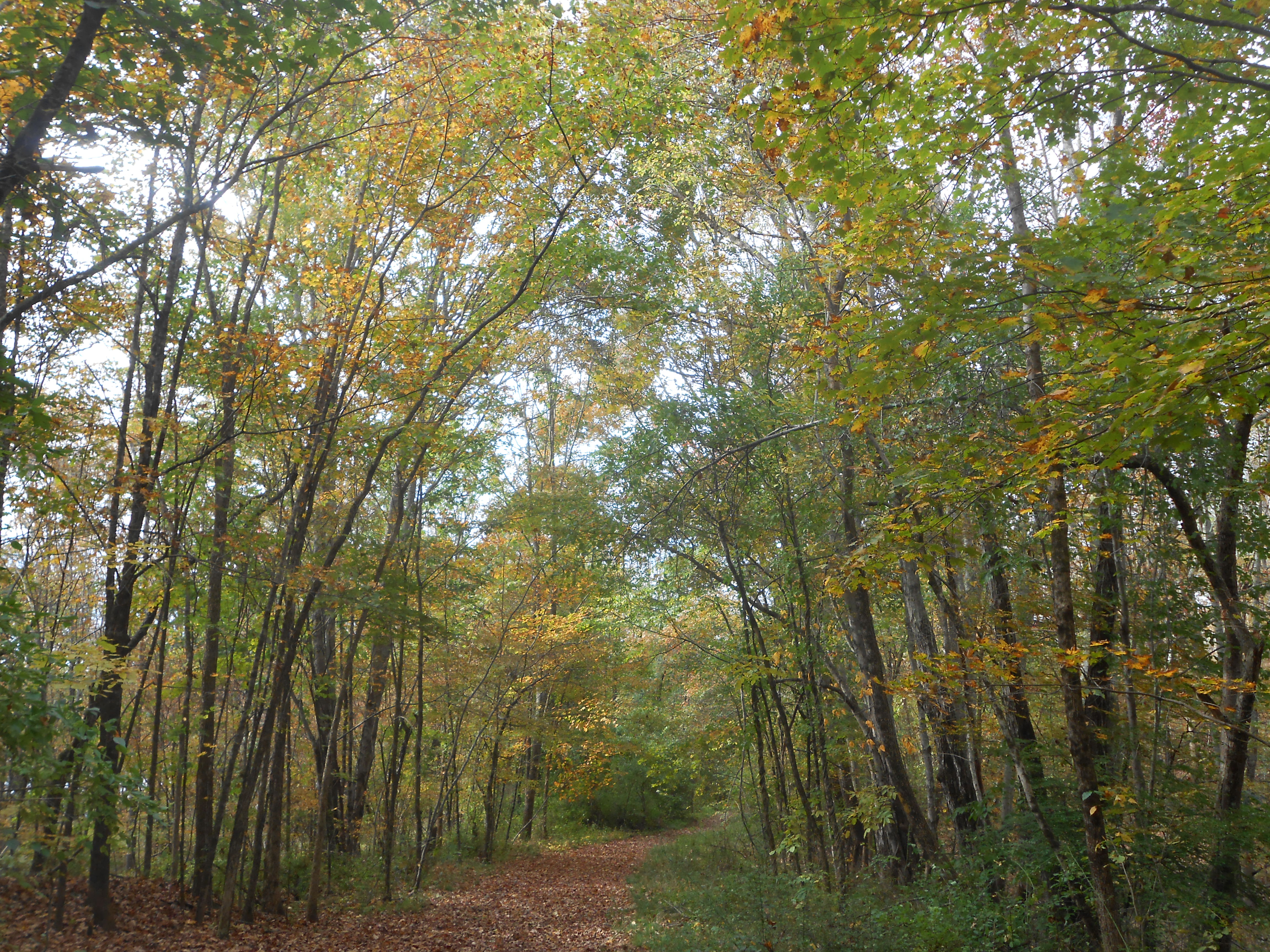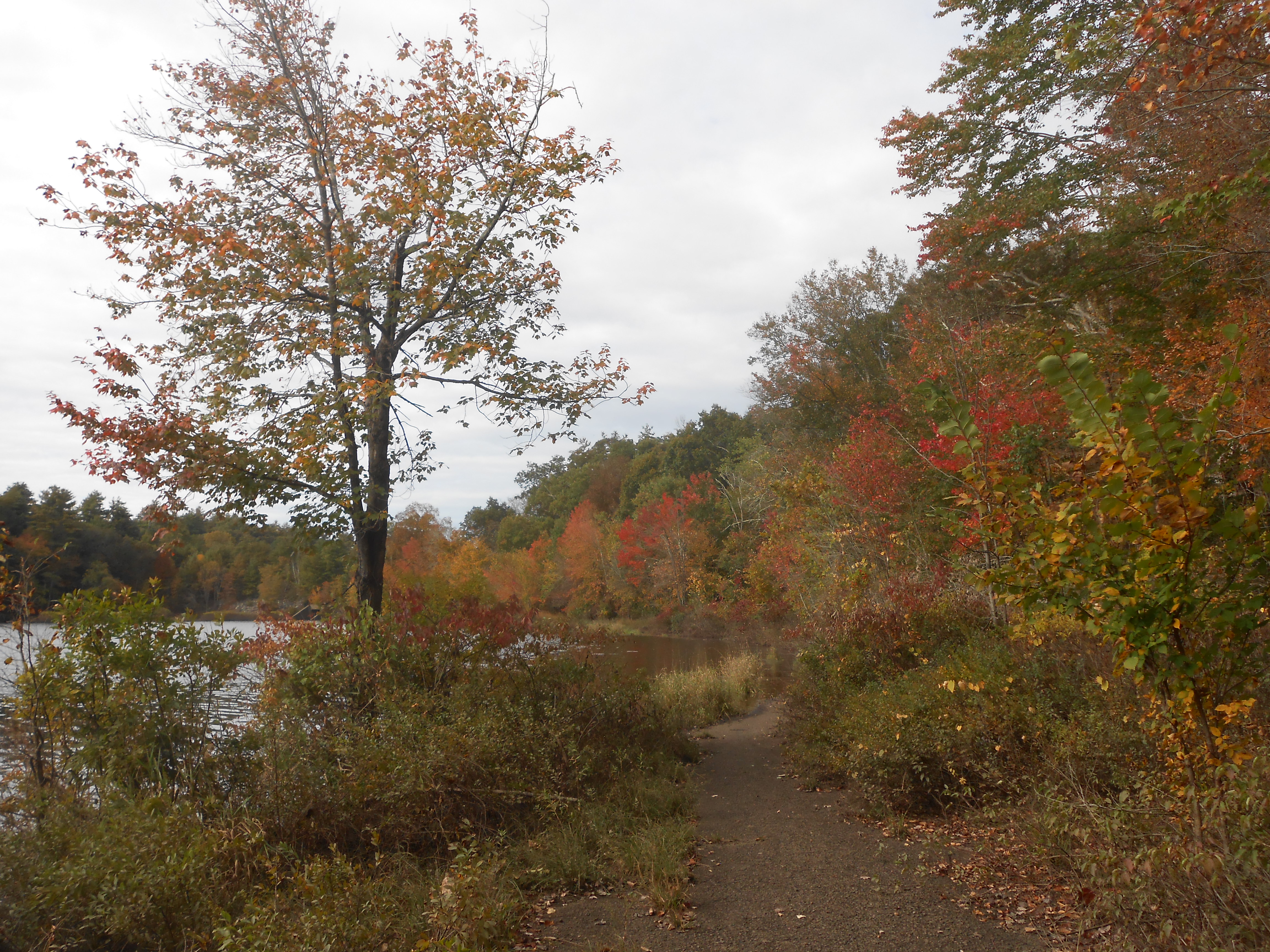 One new place Yang and I visited was the Albany Rail Trail in New York.  The trail starts on an uphill slope, but once you get to the top, it levels off and is smooth sailing till the end.  We ended up doing 18 miles of beautiful fall scenery along a river and through the woods.