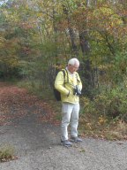 Every season, Yang and I try take a hike at what we call “The Secret Place.”  It’s really not so very secret, since we usually run into a few hikers or kayakers there.  Still, it feels secret to us.  Anyway, we made our fall visit a couple of weeks back, hoping to see some beautiful foliage and do a little birding.  We’ve seen quite a few warblers, aquatic fowl, and even eagles over the years here.  You can see Yang is well prepared with his fancy-schmanzy camera.