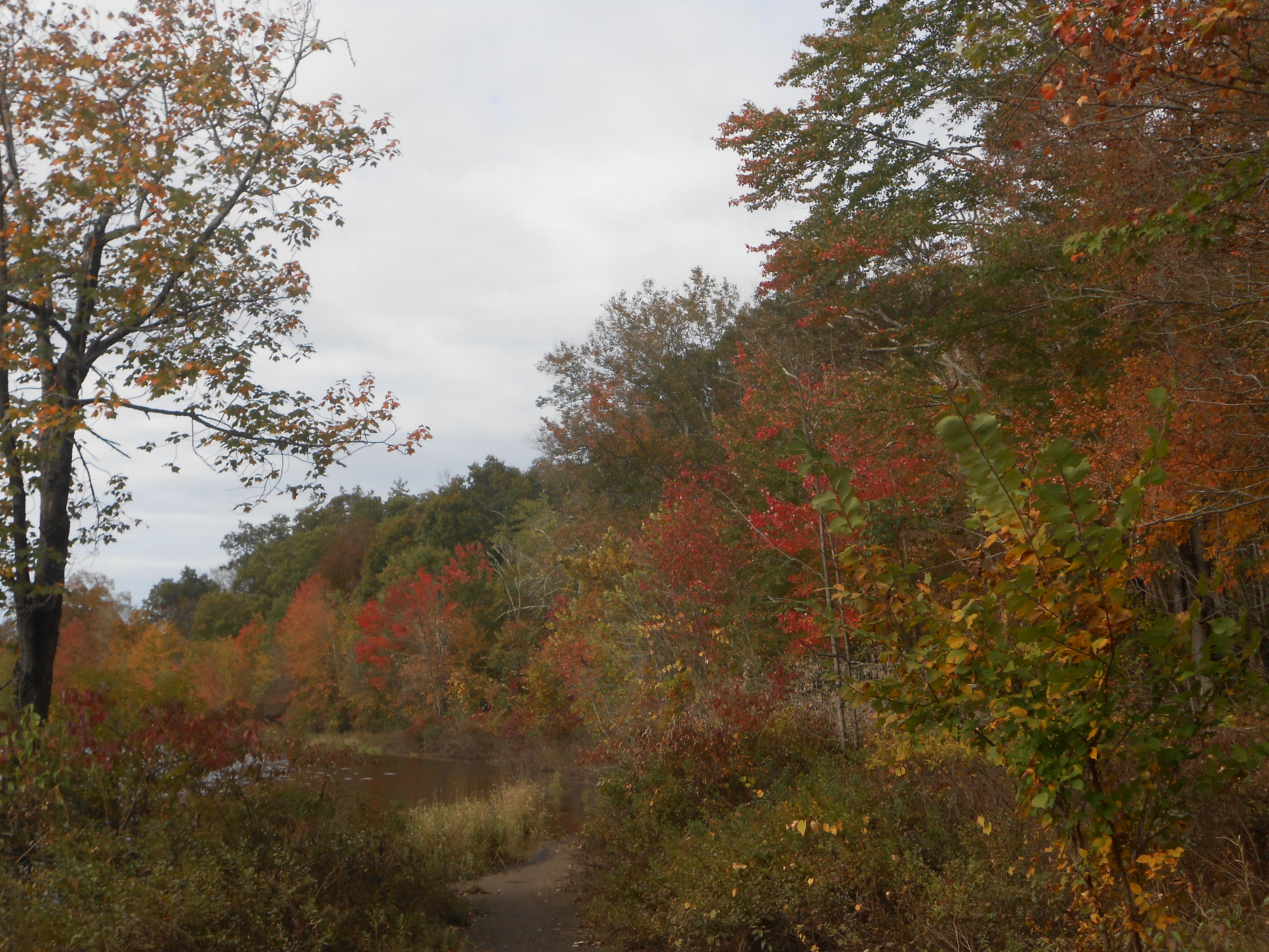 Starting not far from home, Yang and I took a stroll along the board walk that takes you across wetlands and the Muddy River near the College of the Holy Cross.  We came across some beautiful colors, even as we noted how the drought had dried up much of the little river and the marsh.