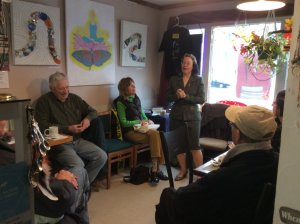 Saturday, 11/18/17, Letter from a Dead Man got its official launch at The Booklovers’ Gourmet in Webster.  What a wonderful experience!  There was a nice turnout of friends, colleagues from school, fellow writers, students from WSU, and even new people I didn’t know yet.  As usual, Deb Horan had the room set up beautifully, and we all had the opportunity to partake of some yummy comestibles and beverages.  I smoothed out my vocal cords with a tasty pumpkin latte – ’tis the season!