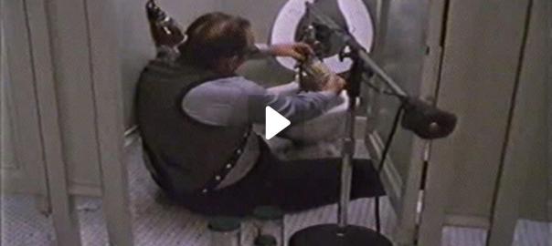 Screen shot of  soundman and toilet from The dvd The Night That Panicked America,CBS Studios, (c) 2014